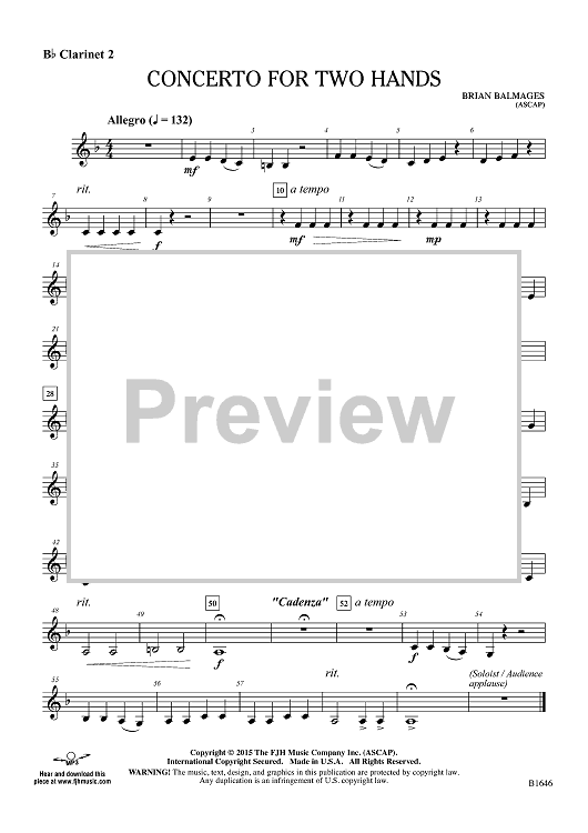 Digital Sheet Music for Concerto for Two Hands - Bb Clarinet 2 by Brian Balmages scored for Concert Band; id:455282