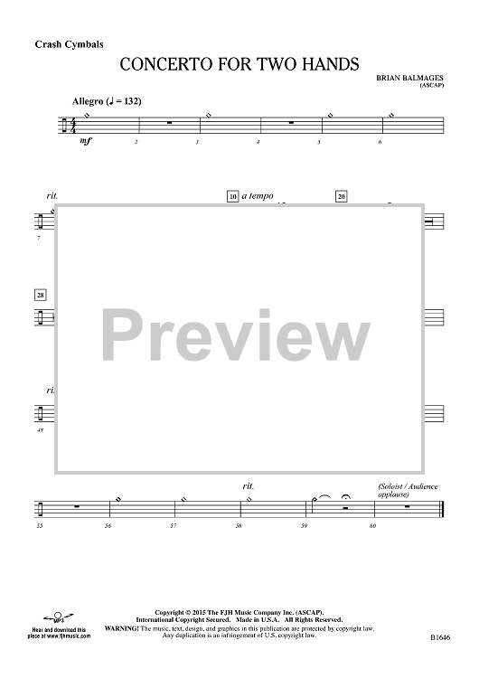Digital Sheet Music for Concerto for Two Hands - Crash Cymbals by Brian Balmages scored for Concert Band; id:455299