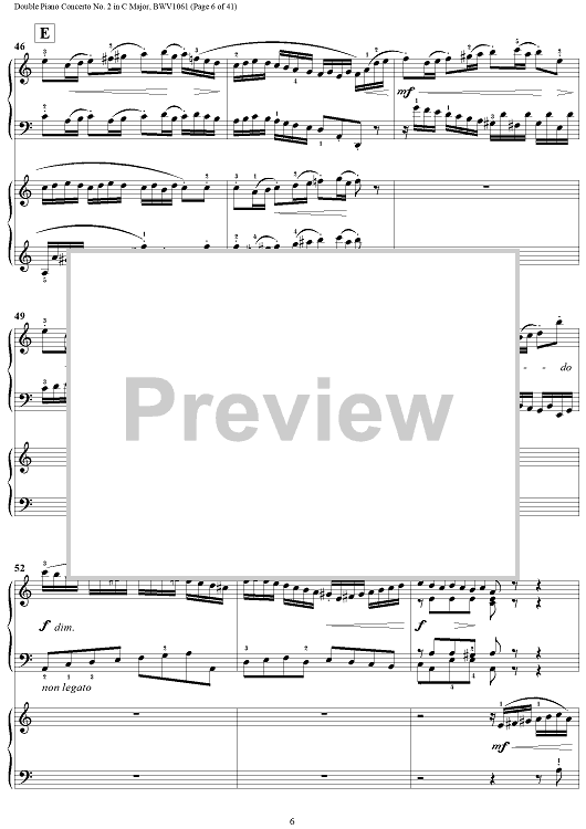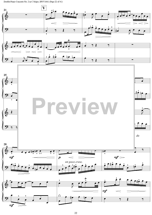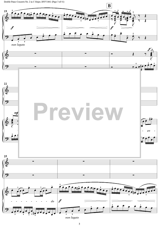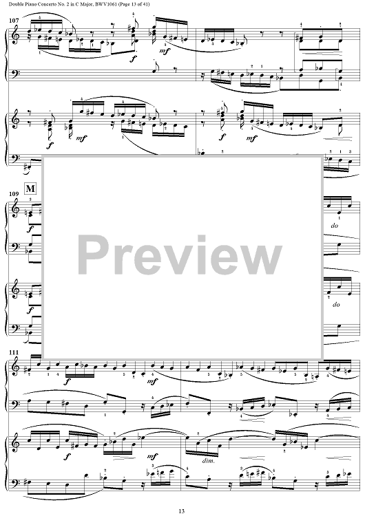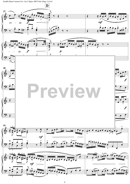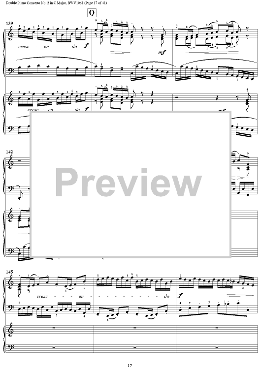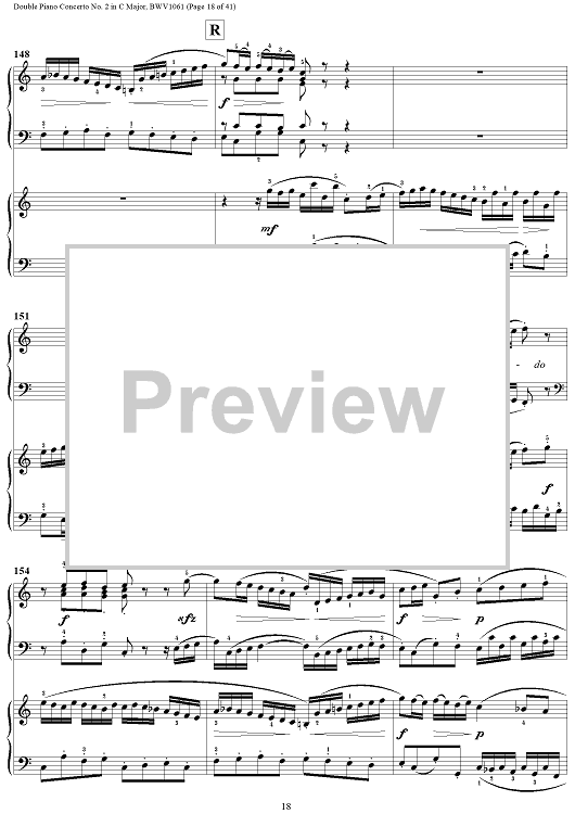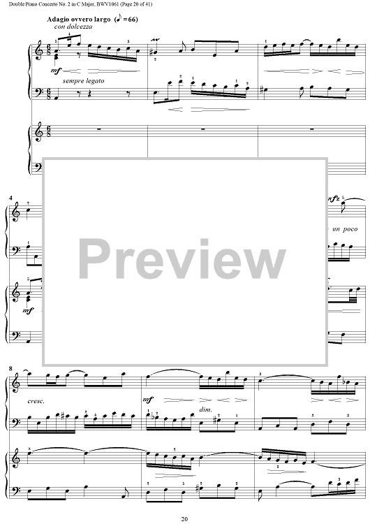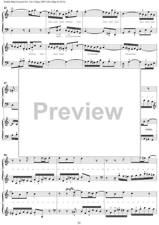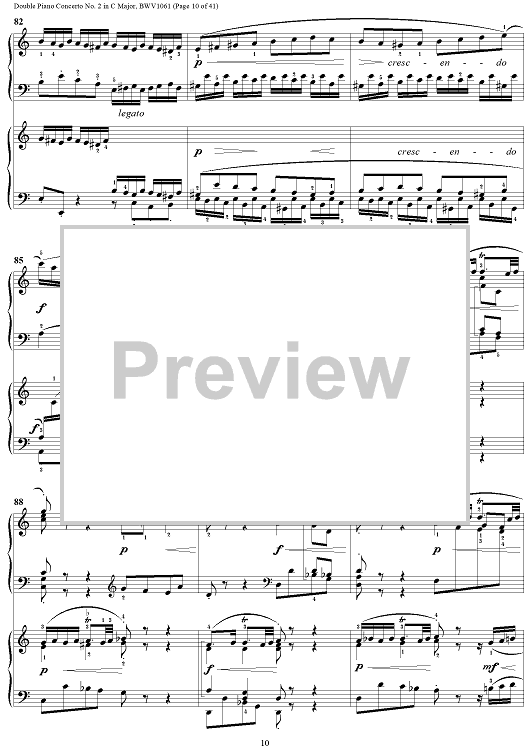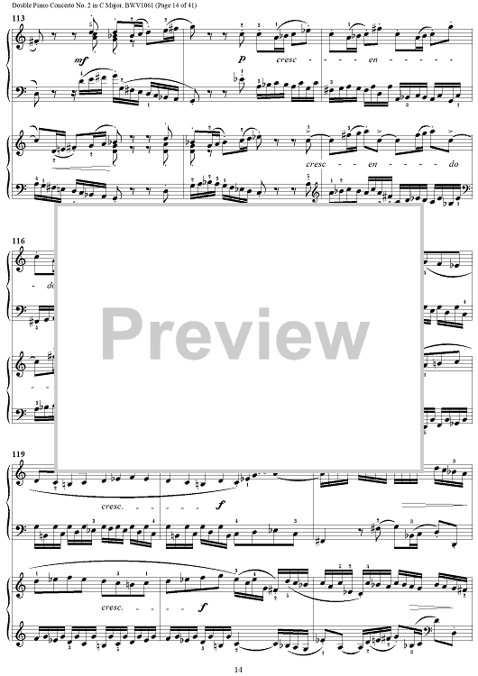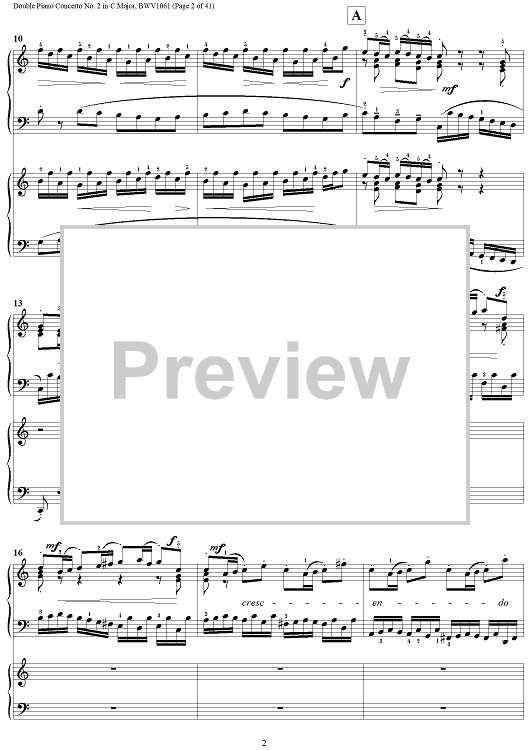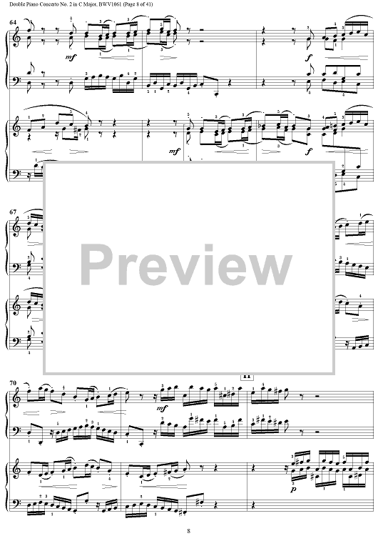 "Concerto for Two Pianos in C Major, BWV1061" Sheet Music by Johann Sebastian Bach