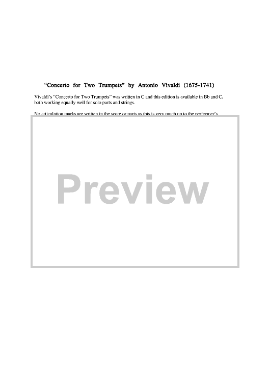 "Concerto for Two Trumpets in Bb - Score Cover" Sheet Music by Antonio Vivaldi