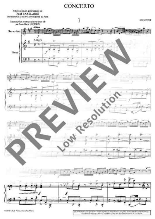 Digital Sheet Music for Concerto G Major - Piano Score and Solo Part by Joseph-Hector Fiocco, Paul Bazelaire scored for Cello (tenor Saxophone) And Orchestra; id:476413