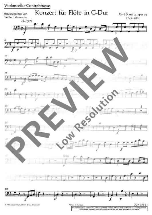Digital Sheet Music for Concerto G Major - Violoncello/double Bass by Carl Philipp Stamitz scored for Flute And String Orchestra, 2 Oboes, 2 Horns Ad Libitum; id:487656