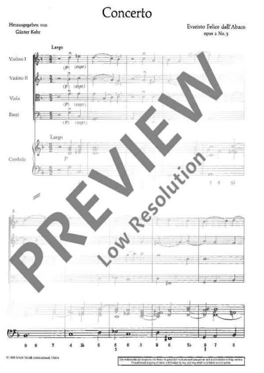 "Concerto G Minor - Score" Sheet Music by Evaristo Felice Dall'Abaco