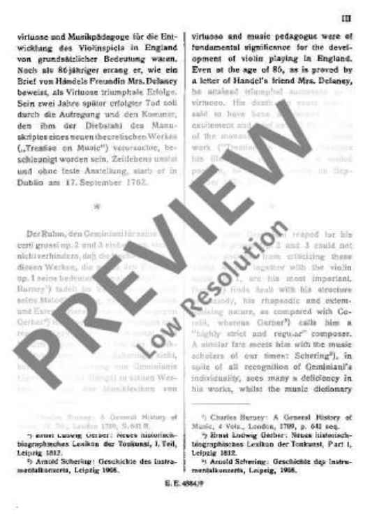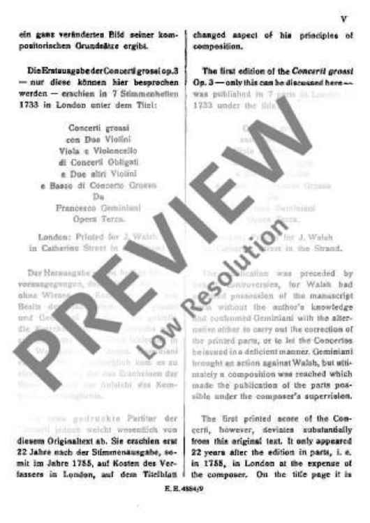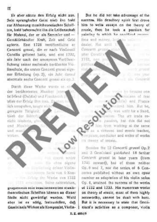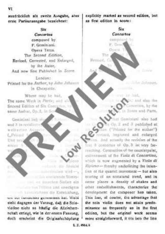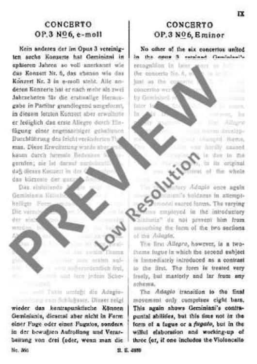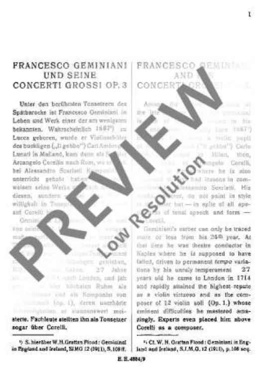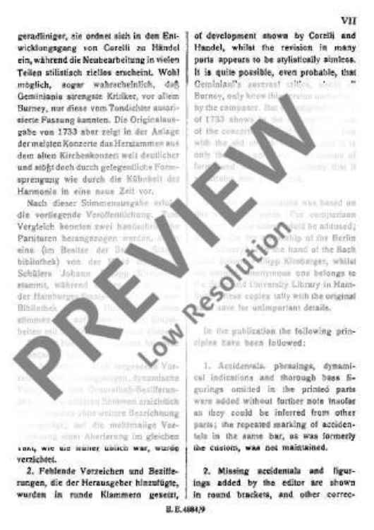 "Concerto grosso E minor - Full Score" Sheet Music by Francesco Geminiani