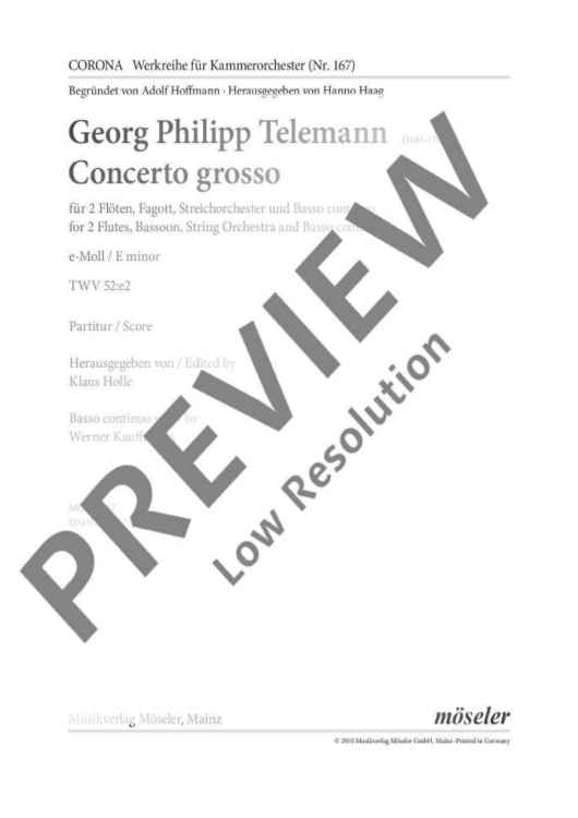 "Concerto grosso E minor - Score" Sheet Music by Georg Philipp Telemann