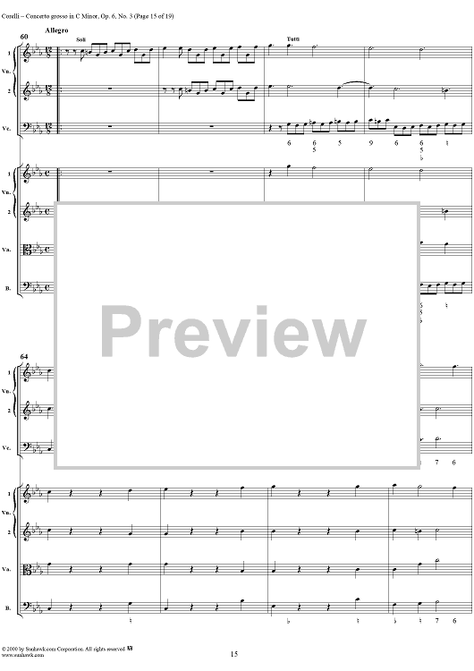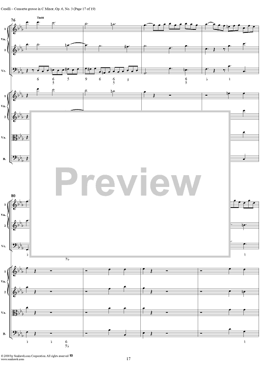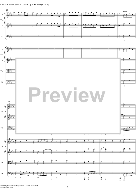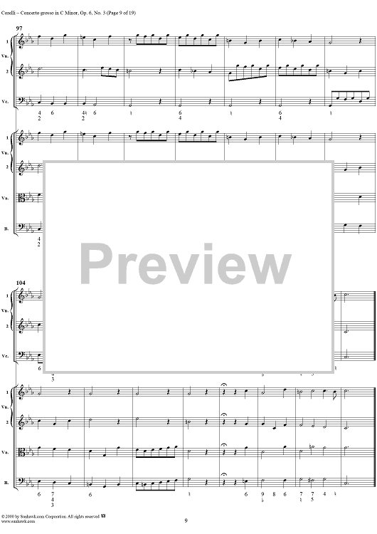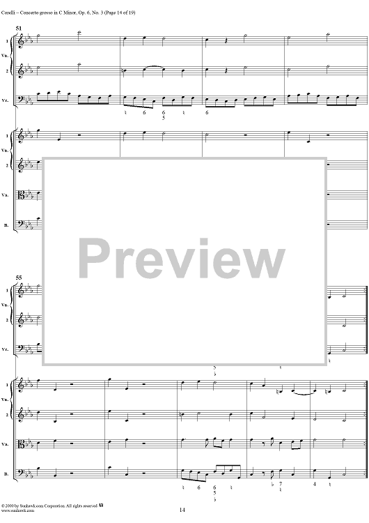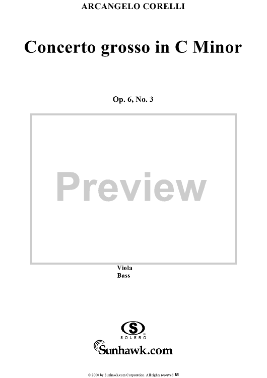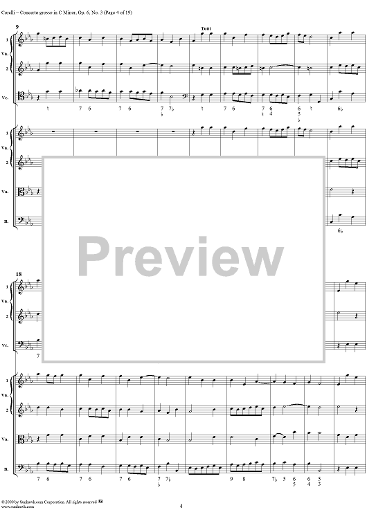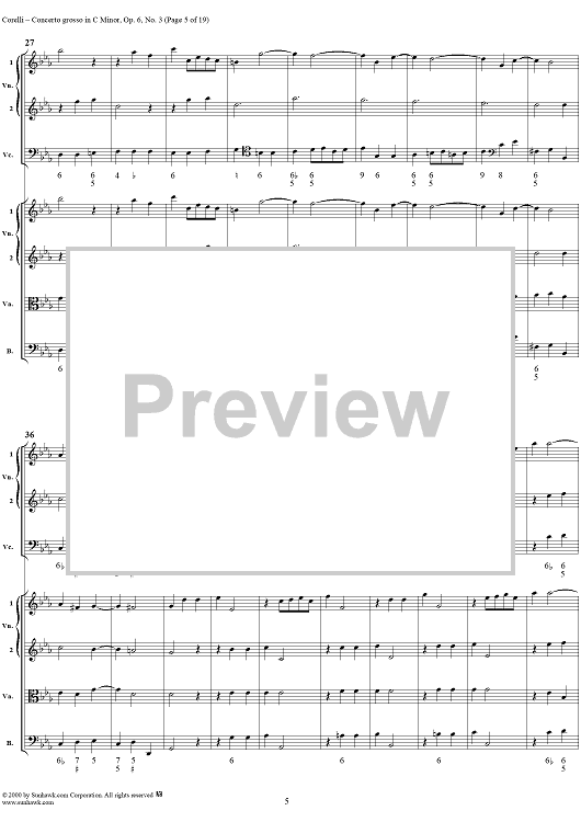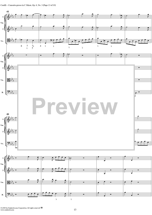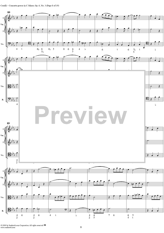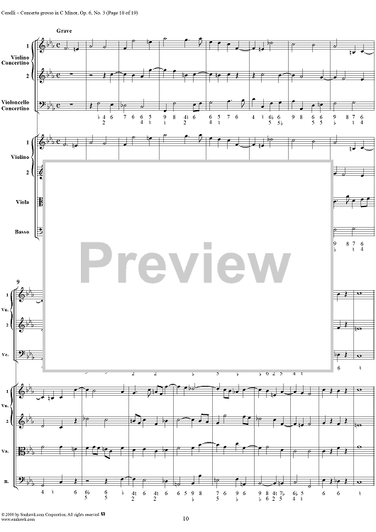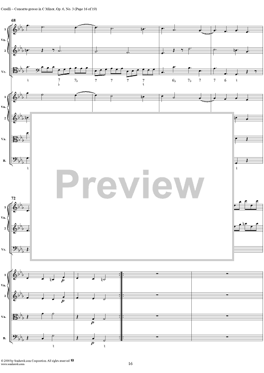 Digital Sheet Music for Concerto grosso in C minor, op. 6, no. 3 - Full Score by Arcangelo Corelli scored for String Orchestra; id:236736