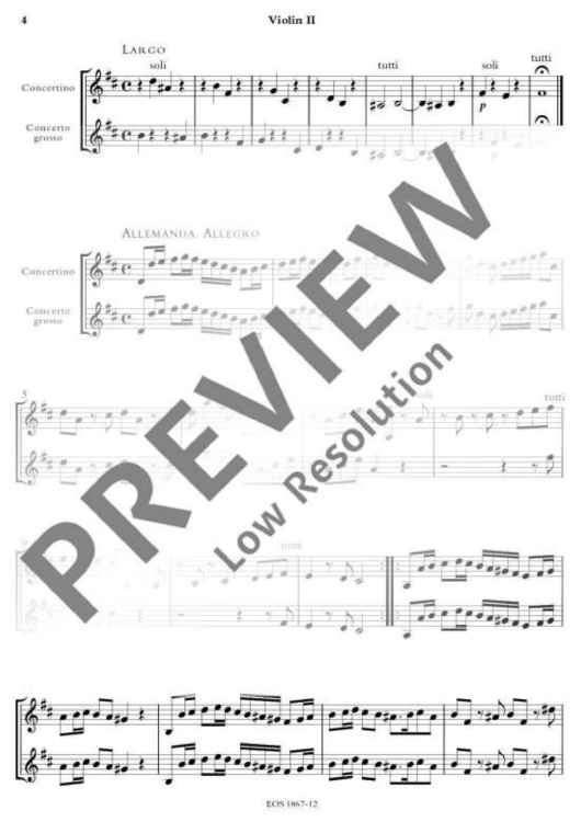 Digital Sheet Music for Concerto Grosso in D major - Violin II by Pietro Antonio Locatelli scored for 2 Violins, Viola, Cello And String Orchestra; id:476851