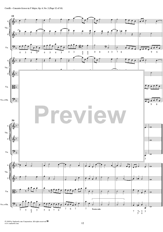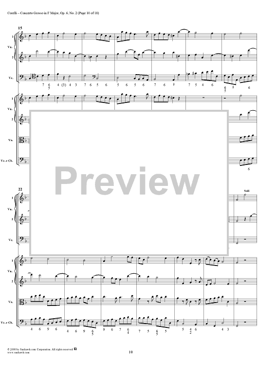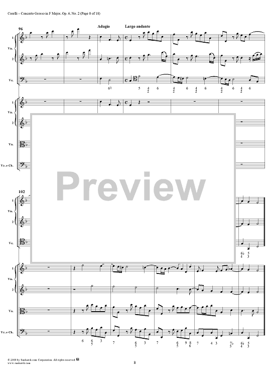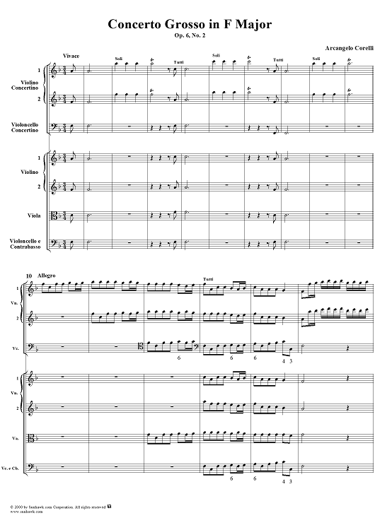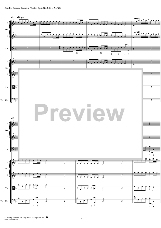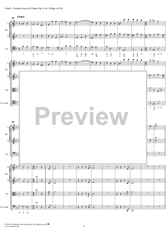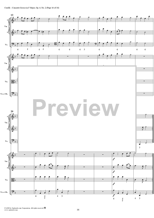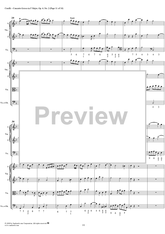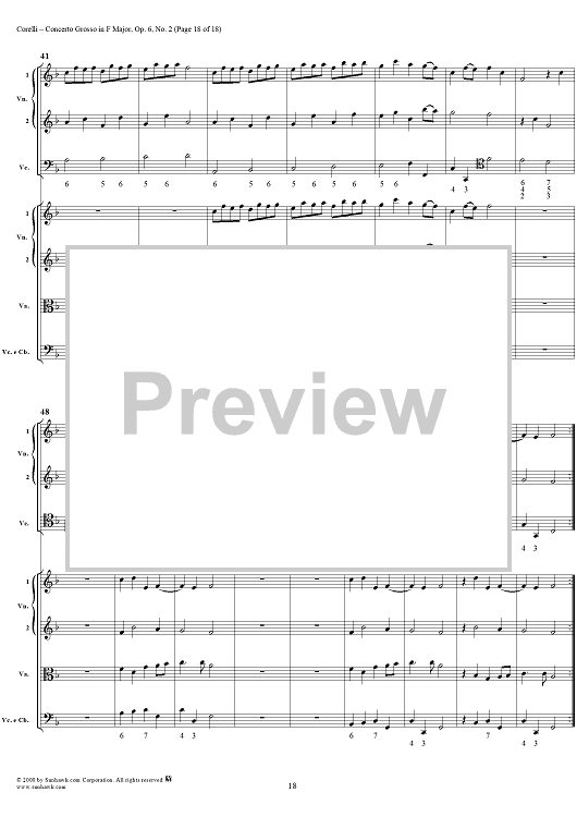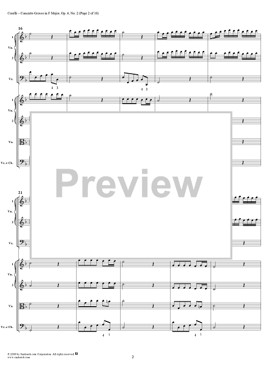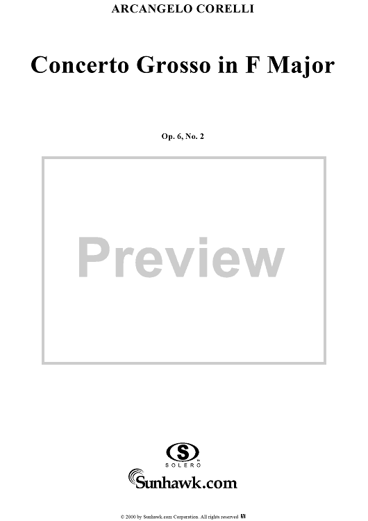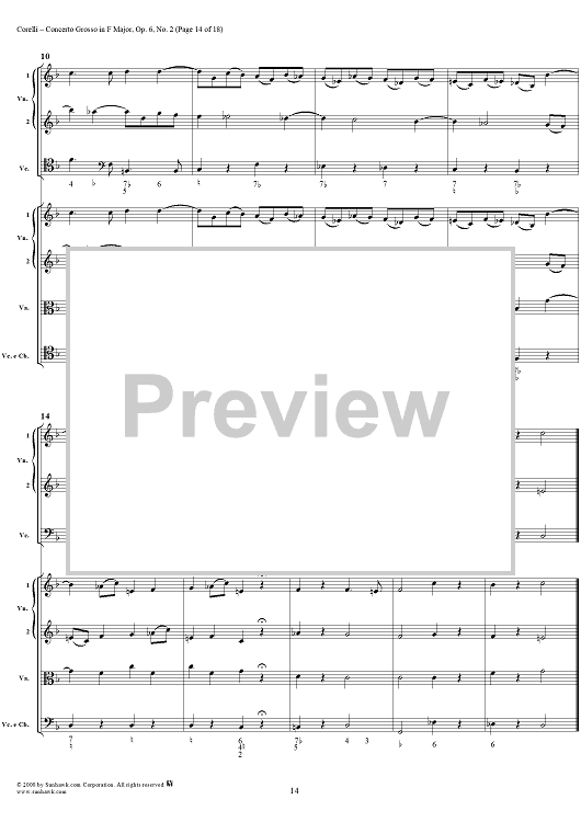 Digital Sheet Music for Concerto grosso in F major, Op. 6, No. 2 - Full Score by Arcangelo Corelli scored for String Orchestra; id:236497