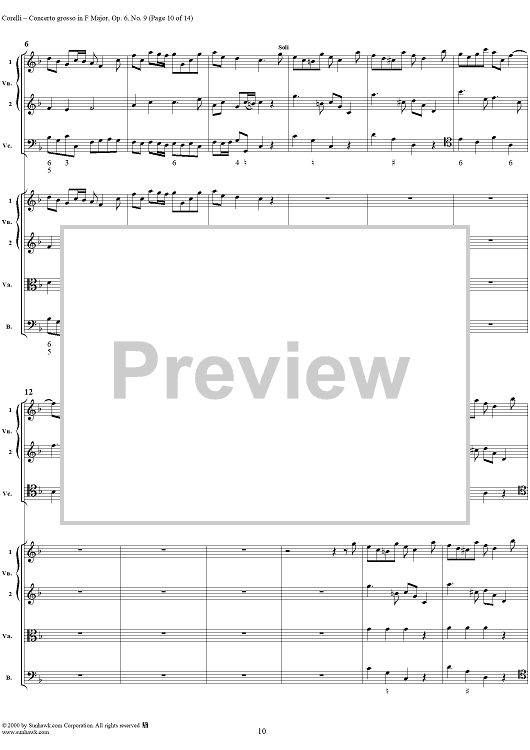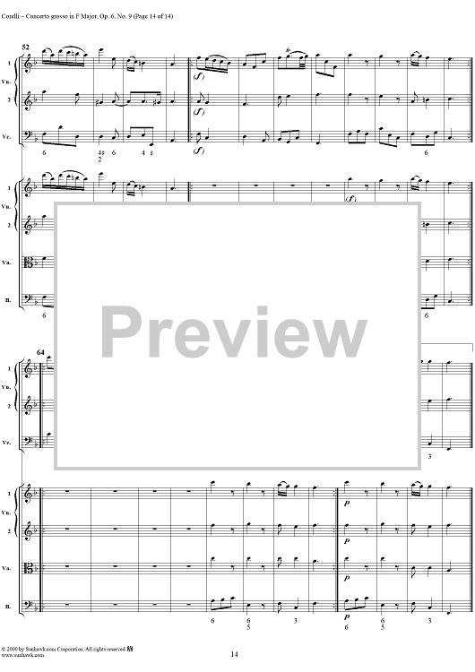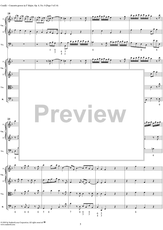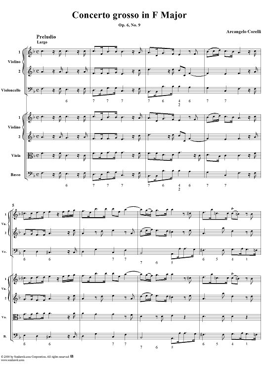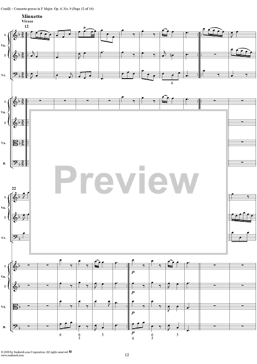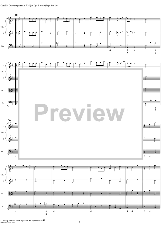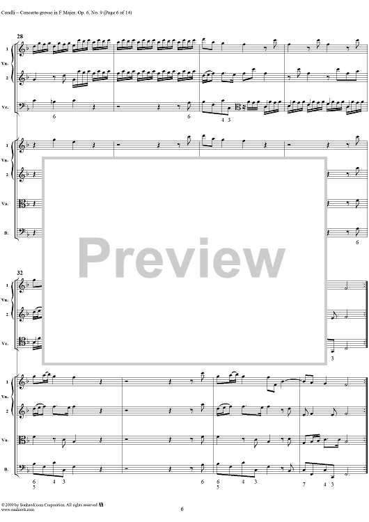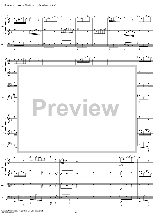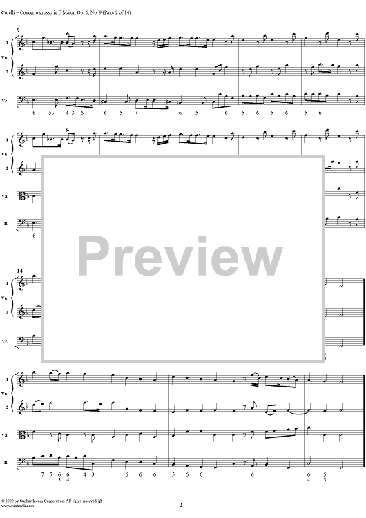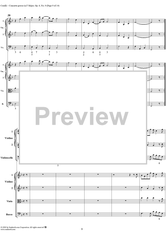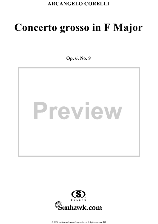 Digital Sheet Music for Concerto grosso in F major, Op. 6, No. 9 - Full Score by Arcangelo Corelli scored for String Orchestra; id:272626