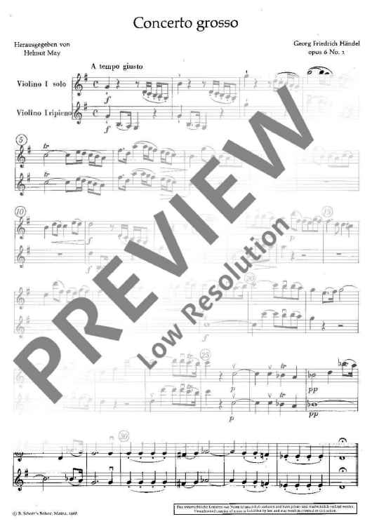 "Concerto grosso in G major - Violine I (solo E Rip.)" Sheet Music by George Frideric Handel