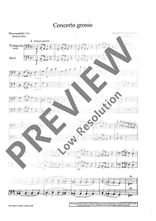 "Concerto grosso in G major - Violoncello/bassi (solo E Rip.)" Sheet Music by George Frideric Handel