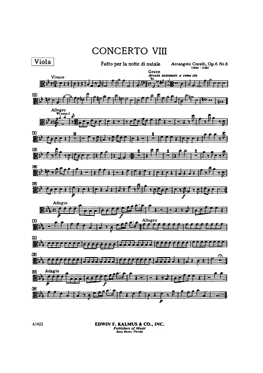 "Concerto Grosso in G minor (Christmas Concerto) Op. 6 No. 8 - Viola" Sheet Music by Arcangelo Corelli