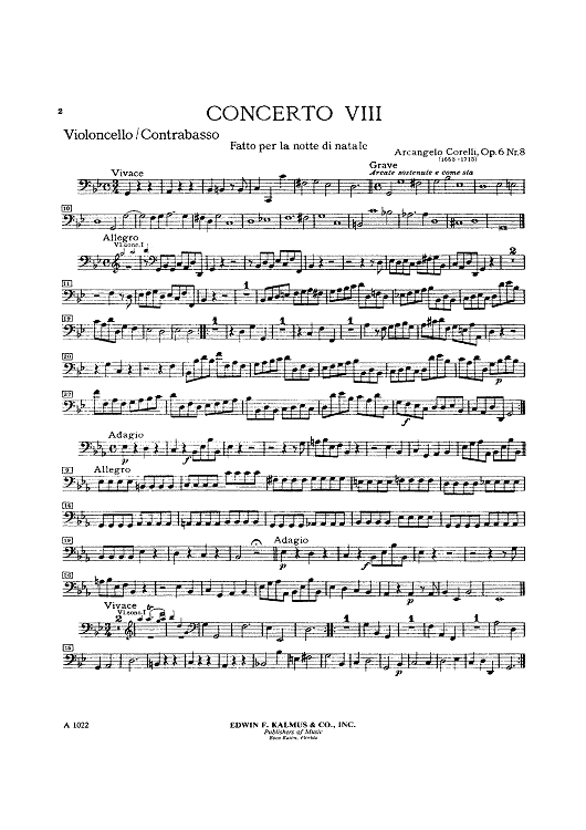 "Concerto Grosso in G minor (Christmas Concerto) Op. 6 No. 8 - Violoncello/Contrabasso" Sheet Music by Arcangelo Corelli