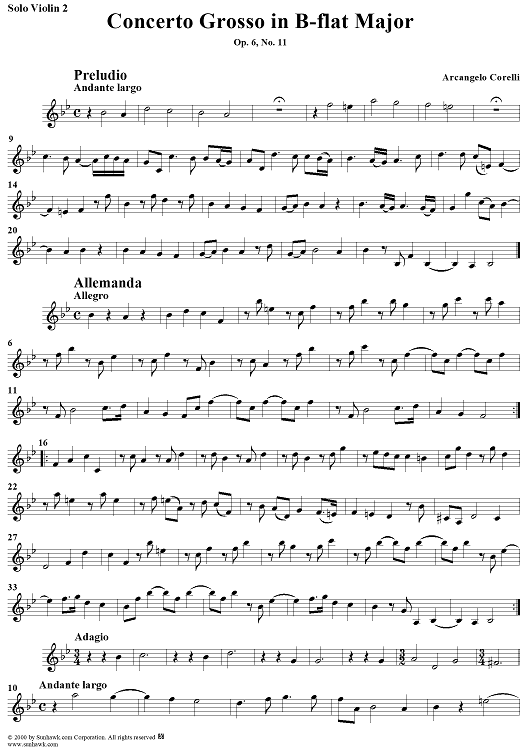 Digital Sheet Music for Concerto Grosso No. 11 in B-flat Major, Op. 6, No. 11 - Solo Violin 2 by Arcangelo Corelli scored for Strings/Continuo; id:273671