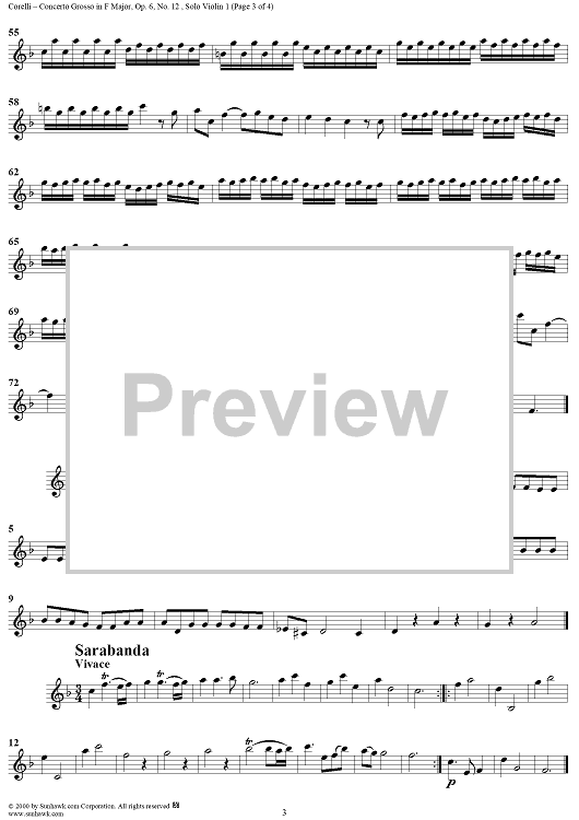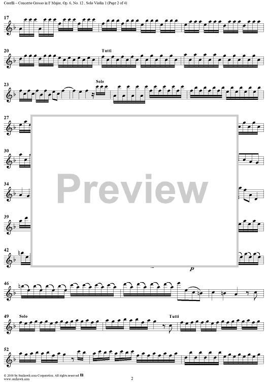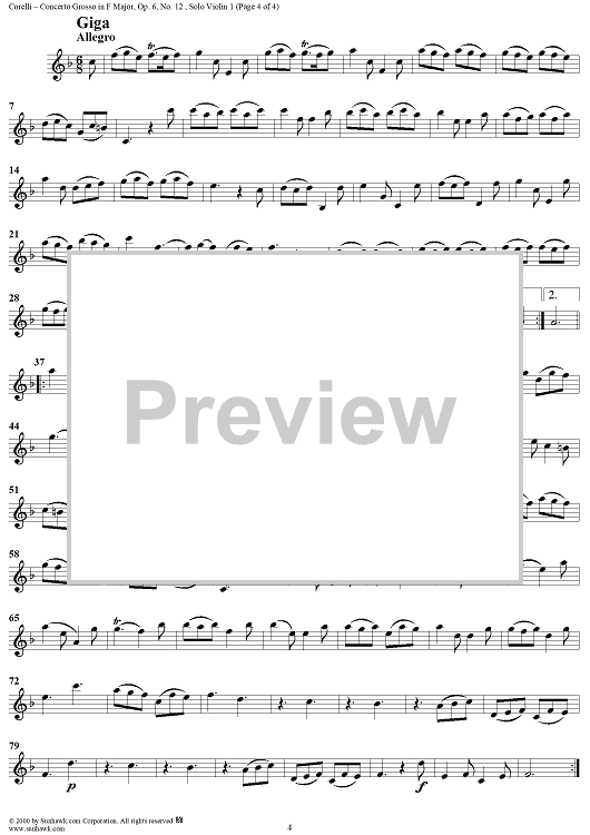 Digital Sheet Music for Concerto Grosso No. 12 in F Major, Op. 6, No. 12 - Solo Violin 1 by Arcangelo Corelli scored for Strings/Continuo; id:273394
