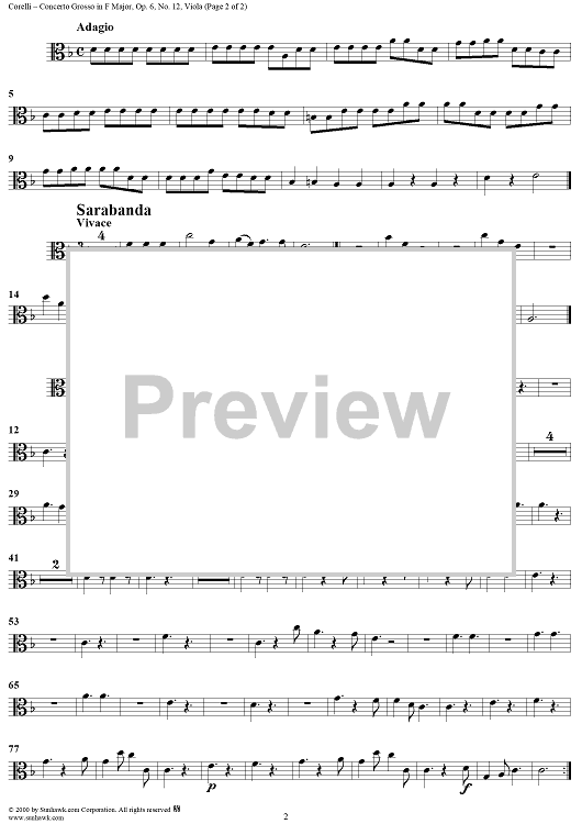 "Concerto Grosso No. 12 in F Major, Op. 6, No. 12 - Viola" Sheet Music by Arcangelo Corelli