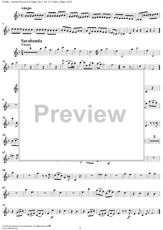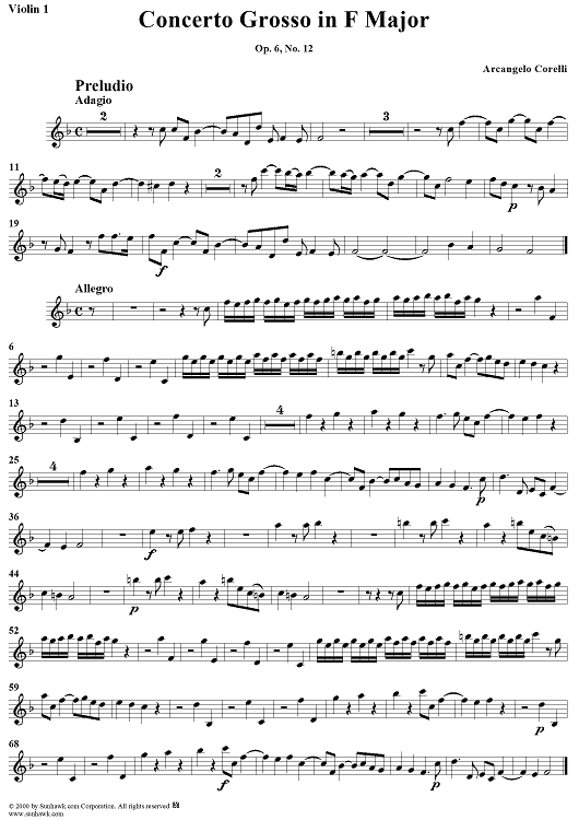 Digital Sheet Music for Concerto Grosso No. 12 in F Major, Op. 6, No. 12 - Violin 1 by Arcangelo Corelli scored for Strings/Continuo; id:273399