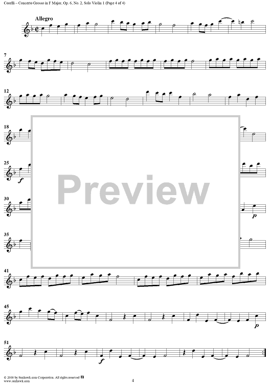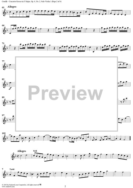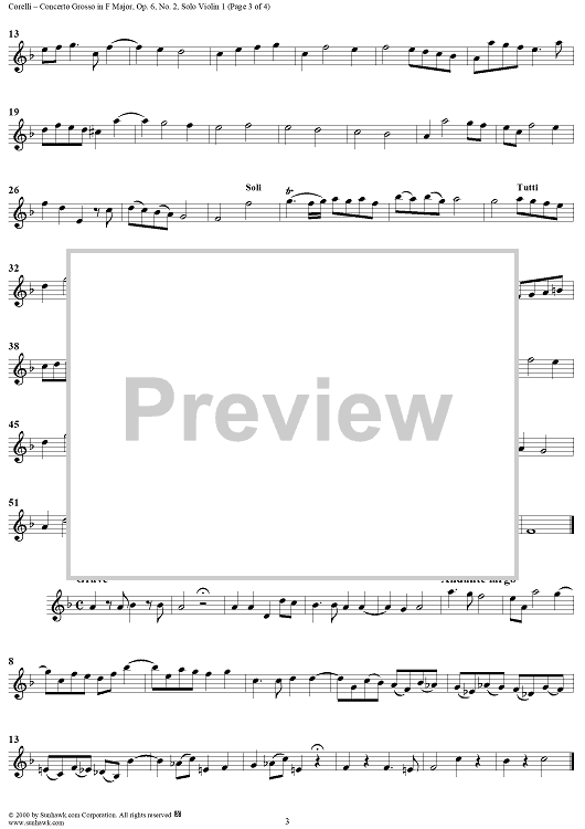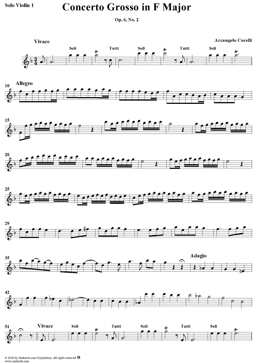 Digital Sheet Music for Concerto Grosso No. 2 in F Major, Op. 6, No. 2 - Solo Violin 1 by Arcangelo Corelli scored for Strings/Continuo; id:273491