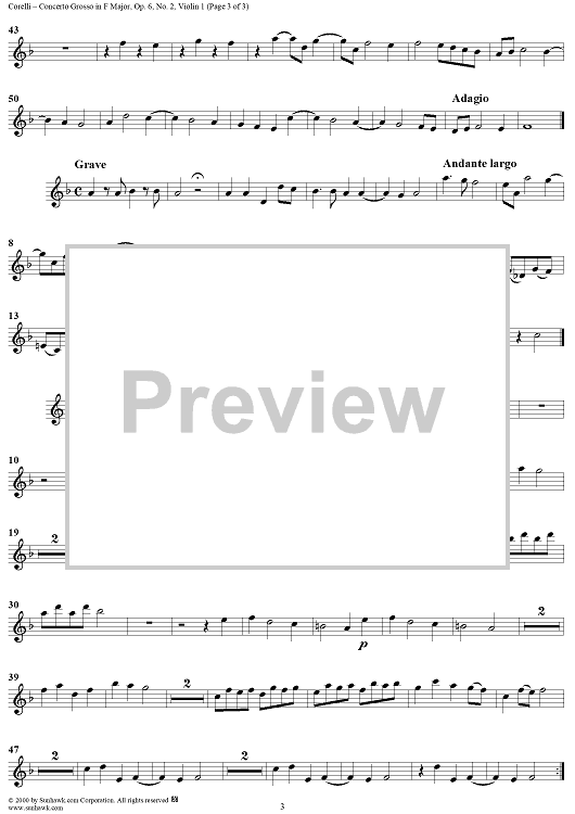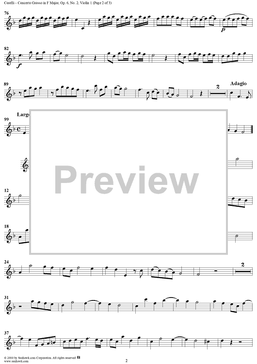 Digital Sheet Music for Concerto Grosso No. 2 in F Major, Op. 6, No. 2 - Violin 1 by Arcangelo Corelli scored for Strings/Continuo; id:273493