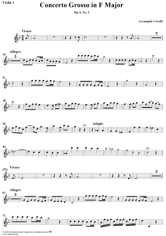 "Concerto Grosso No. 2 in F Major, Op. 6, No. 2 - Violin 1" Sheet Music by Arcangelo Corelli
