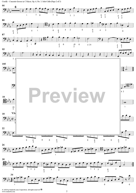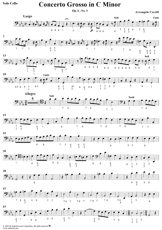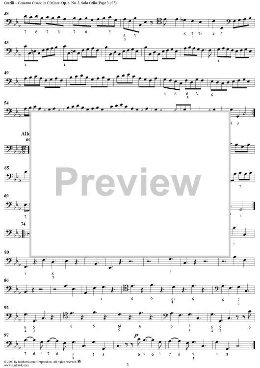 Digital Sheet Music for Concerto Grosso No. 3 in C Minor, Op. 6, No. 3 - Solo Cello by Arcangelo Corelli scored for Strings/Continuo; id:273508