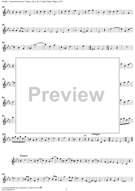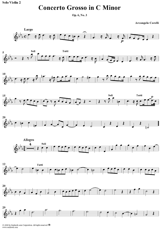 Digital Sheet Music for Concerto Grosso No. 3 in C Minor, Op. 6, No. 3 - Solo Violin 2 by Arcangelo Corelli scored for Strings/Continuo; id:273500