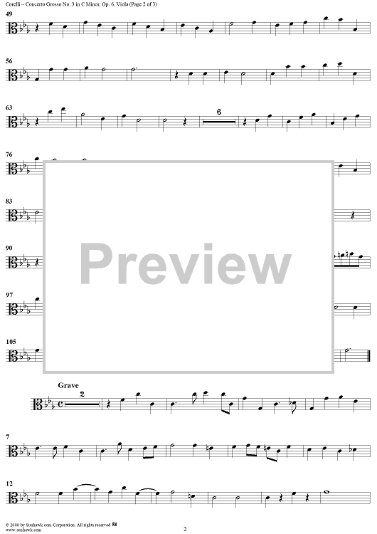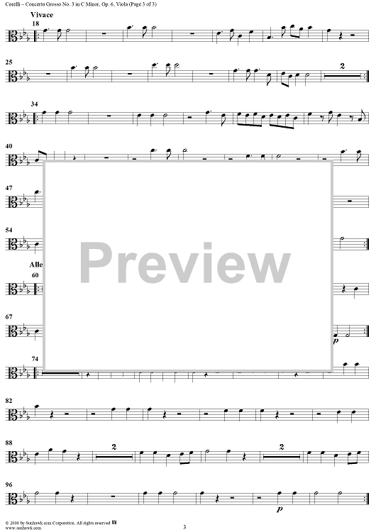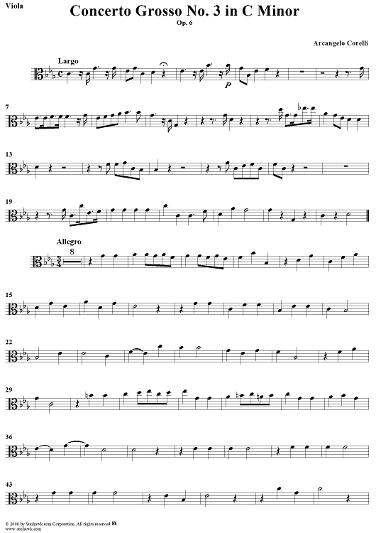 "Concerto Grosso No. 3 in C Minor, Op. 6, No. 3 - Viola" Sheet Music by Arcangelo Corelli
