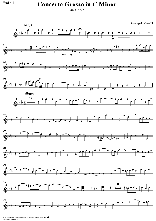 "Concerto Grosso No. 3 in C Minor, Op. 6, No. 3 - Violin 1" Sheet Music by Arcangelo Corelli