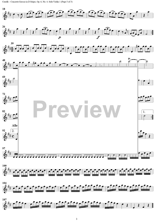 Digital Sheet Music for Concerto Grosso No. 4 in D Major, Op. 6, No. 4 - Solo Violin 1 by Arcangelo Corelli scored for Strings/Continuo; id:273511