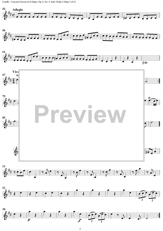 "Concerto Grosso No. 4 in D Major, Op. 6, No. 4 - Solo Violin 2" Sheet Music by Arcangelo Corelli