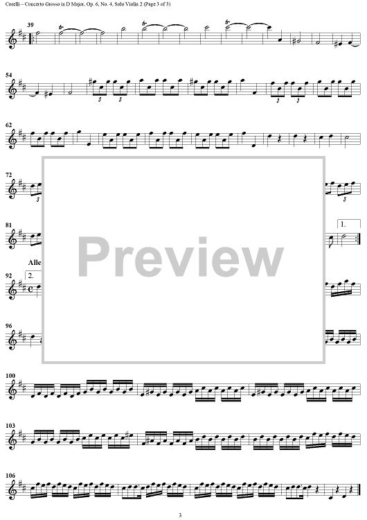 Digital Sheet Music for Concerto Grosso No. 4 in D Major, Op. 6, No. 4 - Solo Violin 2 by Arcangelo Corelli scored for Strings/Continuo; id:273514