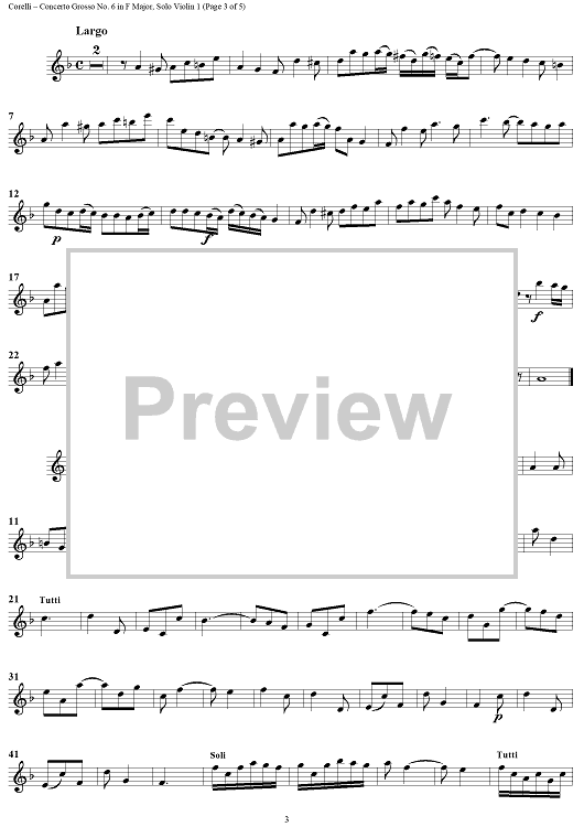 "Concerto Grosso No. 6 in F major, Op. 6, No. 6 - Solo Violin 1" Sheet Music by Arcangelo Corelli