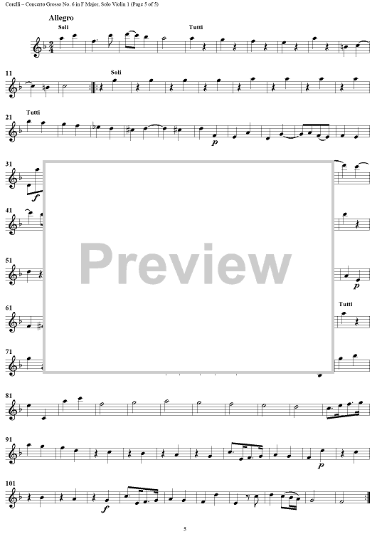 Digital Sheet Music for Concerto Grosso No. 6 in F major, Op. 6, No. 6 - Solo Violin 1 by Arcangelo Corelli scored for Strings/Continuo; id:273823