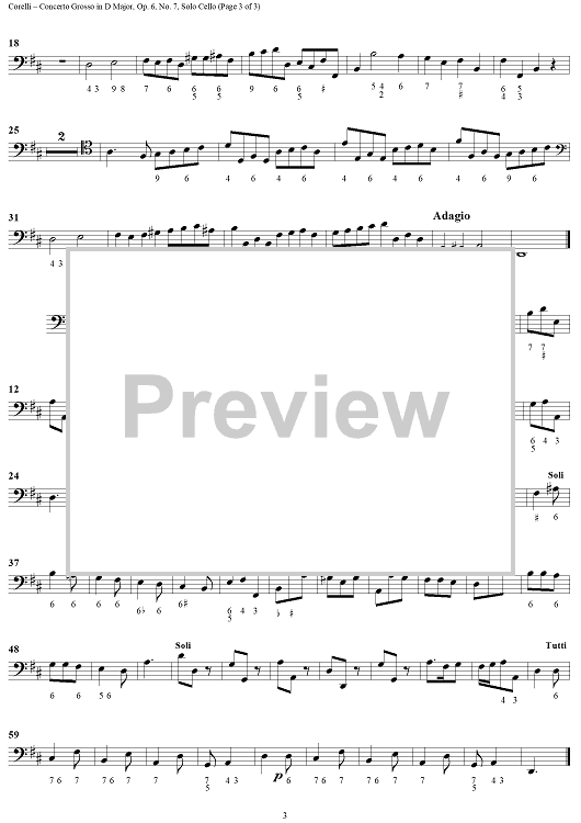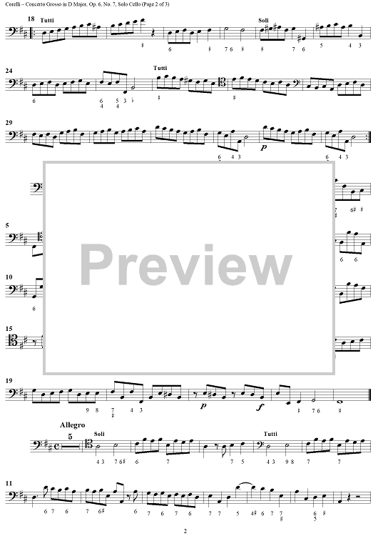 Digital Sheet Music for Concerto Grosso No. 7 in D Major, Op. 6, No. 7 - Solo Cello by Arcangelo Corelli scored for Strings/Continuo; id:273377