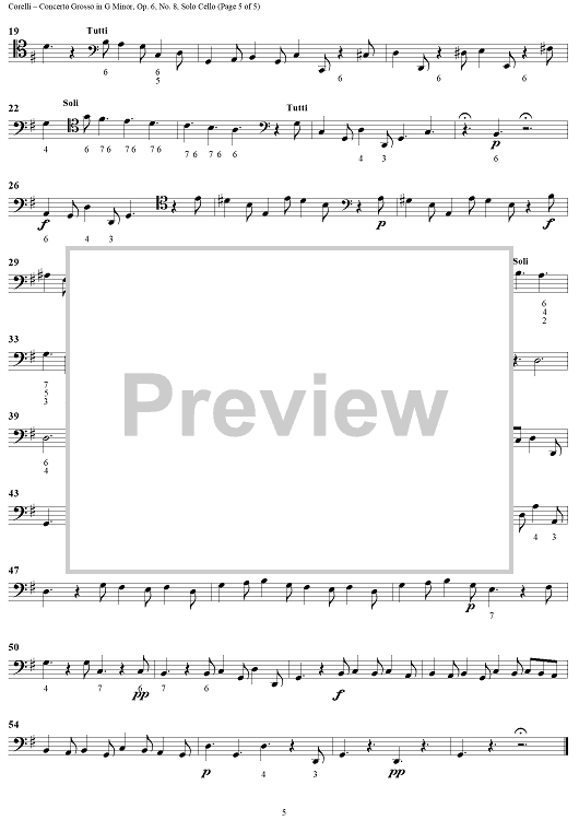 Digital Sheet Music for Concerto Grosso No. 8 in G Minor, Op. 6, "Christmas Concerto" - Solo Cello by Arcangelo Corelli scored for Strings/Continuo; id:273369
