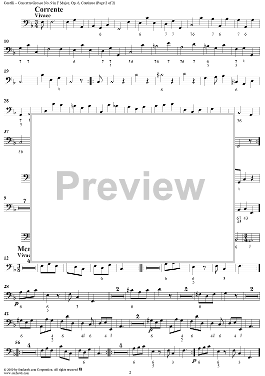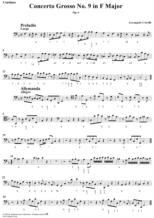 Digital Sheet Music for Concerto Grosso No. 9 in F Major, Op. 6, No. 9 - Continuo by Arcangelo Corelli scored for Strings/Continuo; id:273372