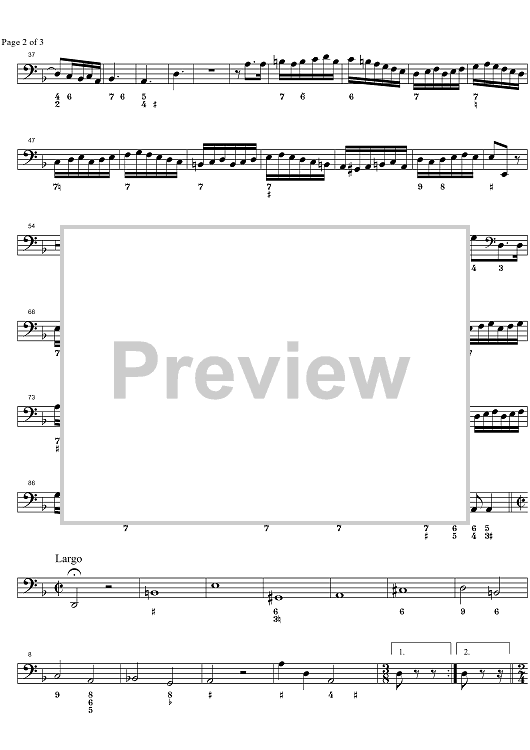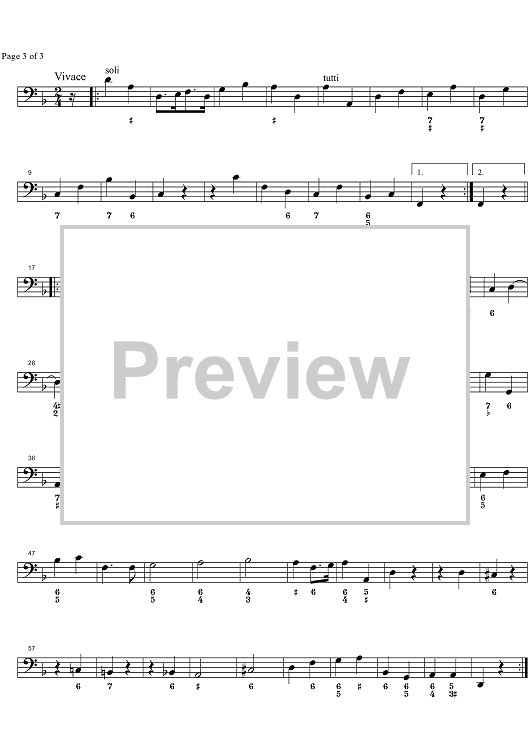 Digital Sheet Music for Concerto Grosso Op. 3 No. 4 - Cello Solo by Francesco Geminiani scored for String Ensemble; id:329462