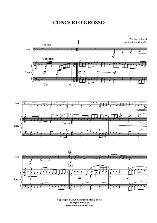 Digital Sheet Music for Concerto Grosso - Piano Score by Vaclav Nelhybel scored for Tuba/Piano; id:320302