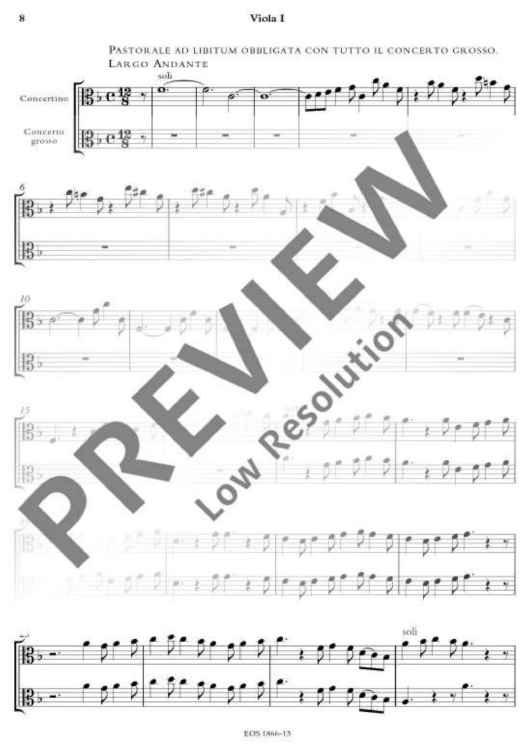 Digital Sheet Music for Concerto Grosso - Viola I by Pietro Antonio Locatelli scored for 4 Solo Parts And String Orchestra; id:476846