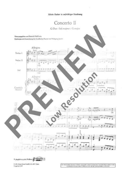 Digital Sheet Music for Concerto II G Major - Score and Parts by Wolfgang Amadeus Mozart, Heinrich Wollheim scored for Harpsichord (piano), 2 Violins And Bass (cello); id:471071