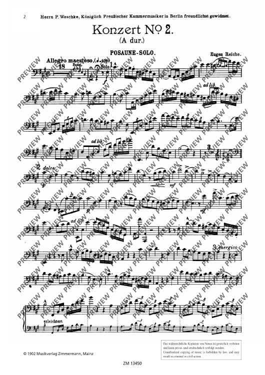 Digital Sheet Music for Concerto in A major - Piano Score and Solo Part by Eugen Reiche scored for Trombone And Orchestra; id:505426