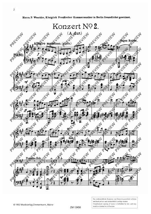"Concerto in A major - Piano Score and Solo Part" Sheet Music by Eugen Reiche