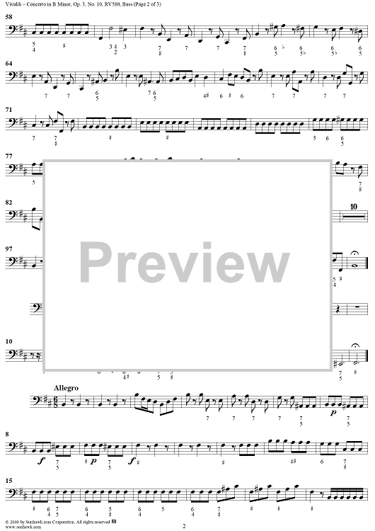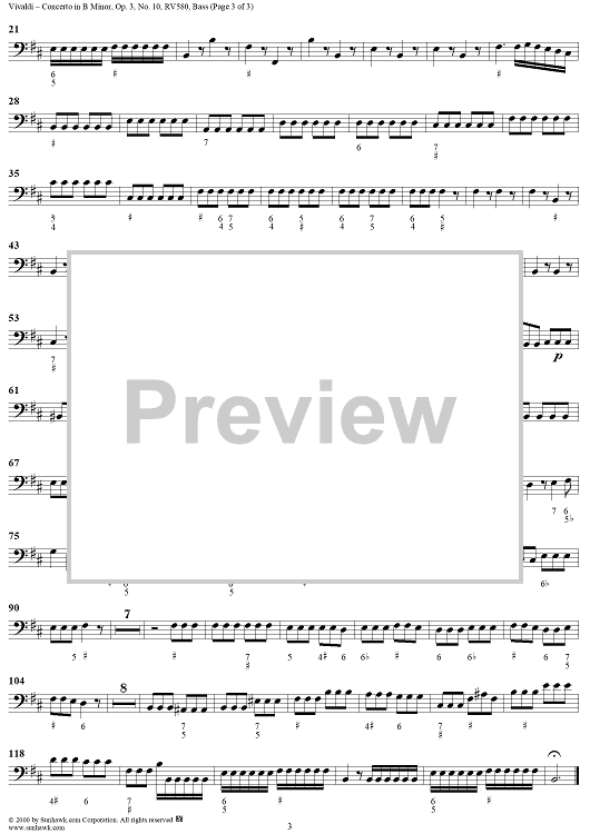 "Concerto in B Minor, Op. 3, No. 10, RV580 from "L'estro Armonico" - Bass" Sheet Music by Antonio Vivaldi
