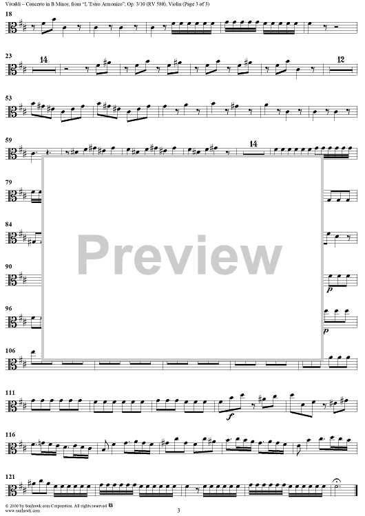 Digital Sheet Music for Concerto in B Minor, Op. 3, No. 10, RV580 from "L'estro Armonico" - Viola 1 by Antonio Vivaldi scored for String Orchestra; id:262349