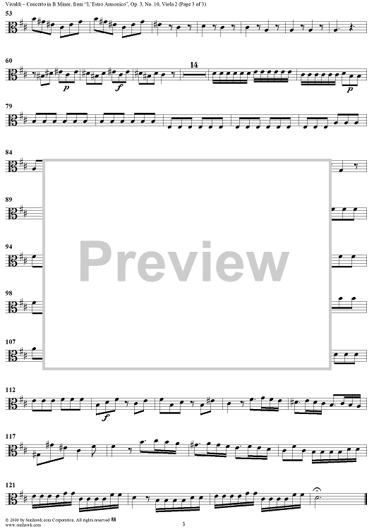 Digital Sheet Music for Concerto in B Minor, Op. 3, No. 10, RV580 from "L'estro Armonico" - Viola 2 by Antonio Vivaldi scored for String Orchestra; id:262353