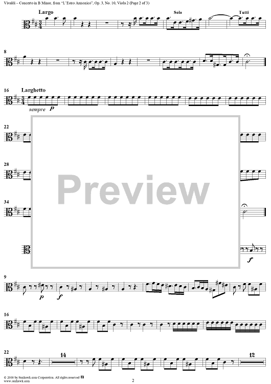 "Concerto in B Minor, Op. 3, No. 10, RV580 from "L'estro Armonico" - Viola 2" Sheet Music by Antonio Vivaldi