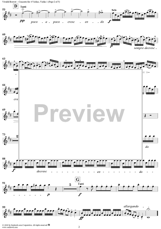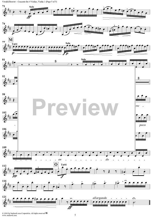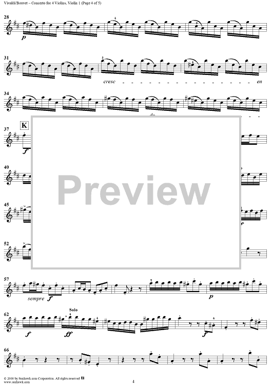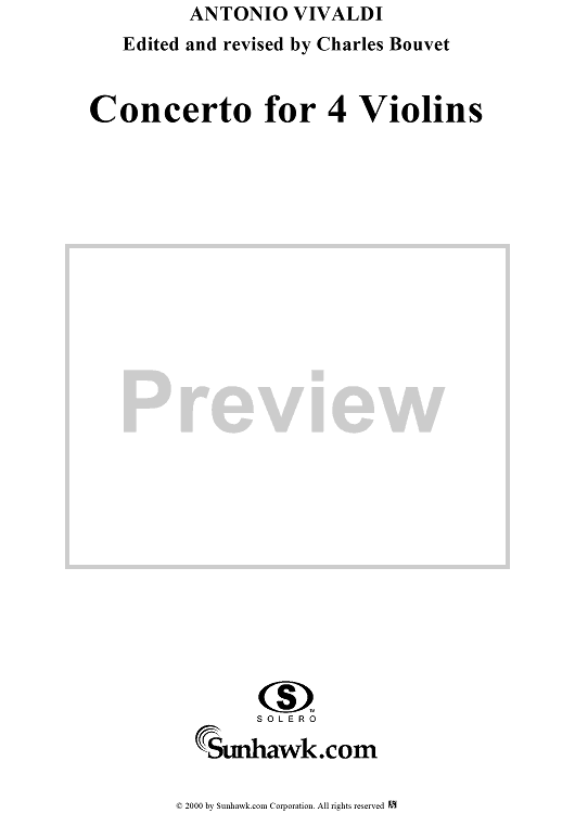 Digital Sheet Music for Concerto in B Minor, Op. 3, No. 10, RV580 from "L'Estro Armonico" - Violin 1 by Antonio Vivaldi, Charles Bouvet scored for Four Violins/Piano/Continuo; id:265011