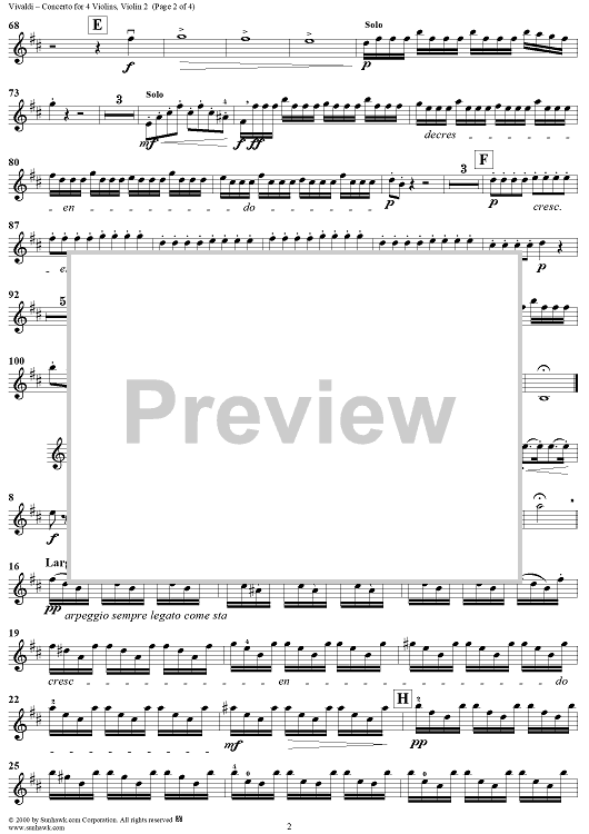 "Concerto in B Minor, Op. 3, No. 10, RV580 from "L'Estro Armonico" - Violin 2" Sheet Music by Antonio Vivaldi