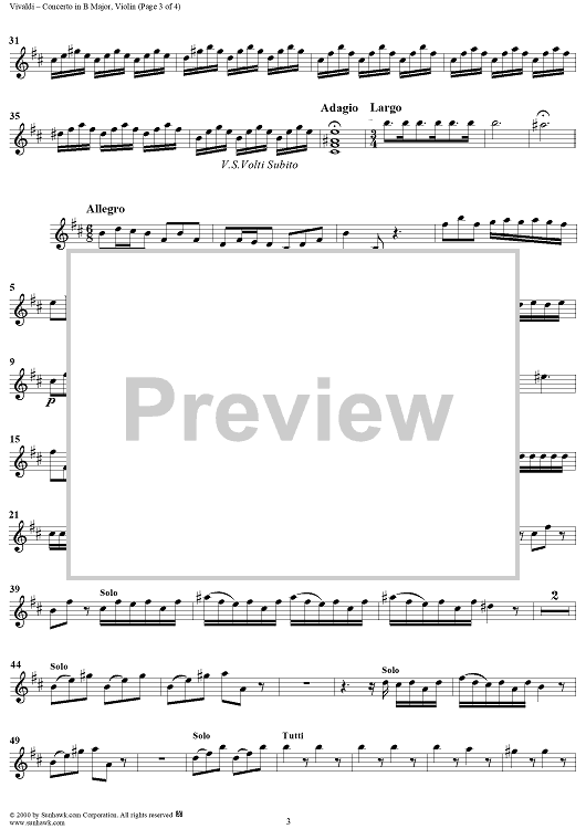 "Concerto in B Minor, Op. 3, No. 10, RV580 from "L'estro Armonico" - Violin 3" Sheet Music by Antonio Vivaldi