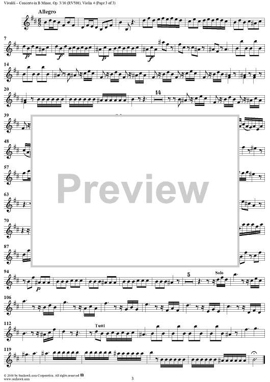 "Concerto in B Minor, Op. 3, No. 10, RV580 from "L'estro Armonico" - Violin 4" Sheet Music by Antonio Vivaldi